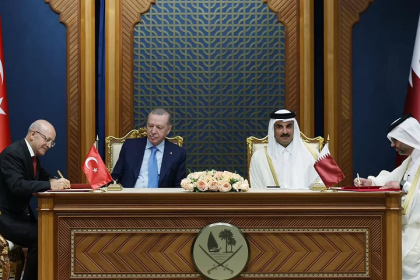 Cumhurbaşkanı Recep Tayyip Erdoğan ile Katar Emiri Şeyh Temim bin Hamed Al Sani huzurunda çeşitli alanlarda anlaşmalar ile Yüksek Stratejik Komite 11. Toplantısı Ortak Bildirisi imzalandı. Emirlik Div...